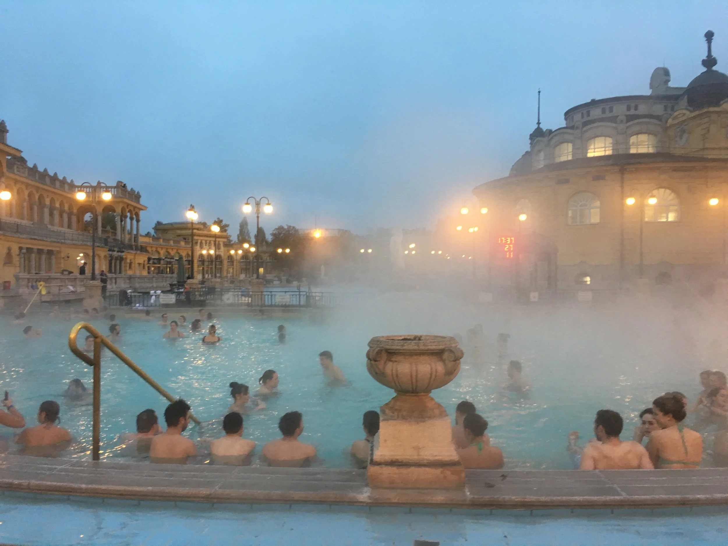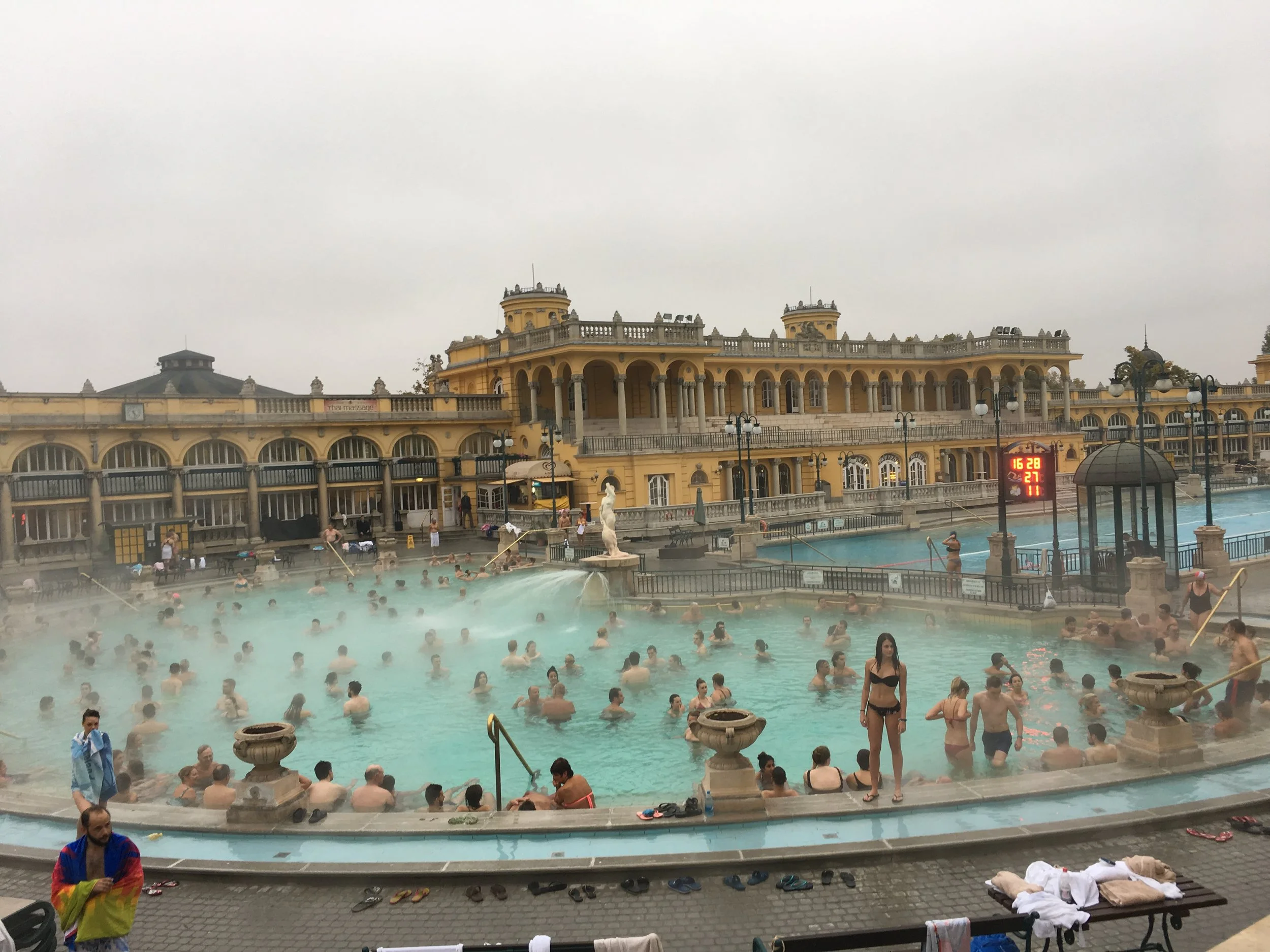 We experienced the Széchenyibaden outdoor and indoor Bath the first day, and it was wonderful. Got there around 4:30ish, and the space has 15 indoor natural thermal pools that are medicinal, and good for joints. They have a large outdoor lap swim thermal pool, and an outdoor thermal pool for relaxing enjoying the views. The temperature was around 95-100 F, which felt perfect with the autumn air being around 55. One of the locals later let us know, he finds the old men that go there disgusting, so I don't know if that changed my mind on the idea or not...buuuuut it was fun.